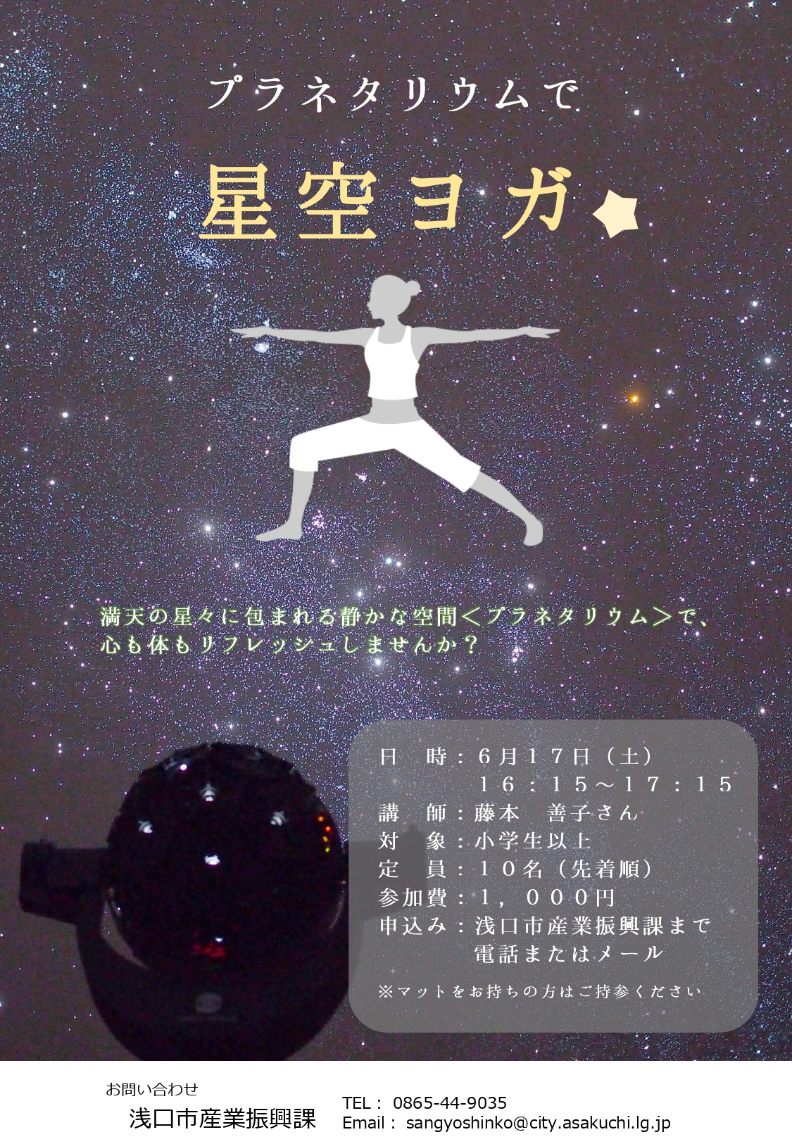 岡山天文博物館のプラネタリウム室で、ヨガ教室を初開催⭐