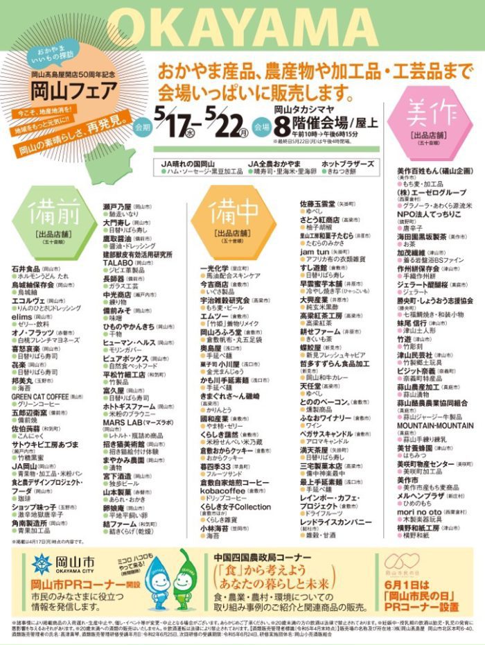 岡山高島屋が開店50周年を記念した「岡山フェア」を開催します!