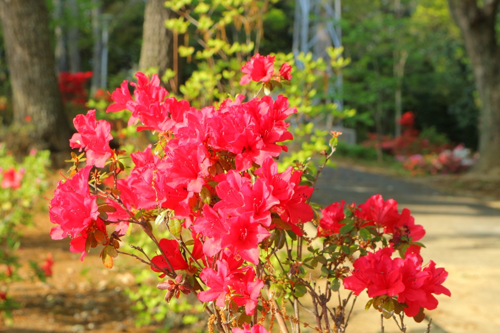 金光教本部の裏山は散策道になっており、ツツジが見頃を迎えています。赤、ピンク、白と色とりどりのツツジがとてもきれいです。日中も暖かく、生き物たちも活発に動き出す季節です。お散歩やお出かけの際には、紫外線対策だけでなく虫よけもしっかり行うことをお勧めします!