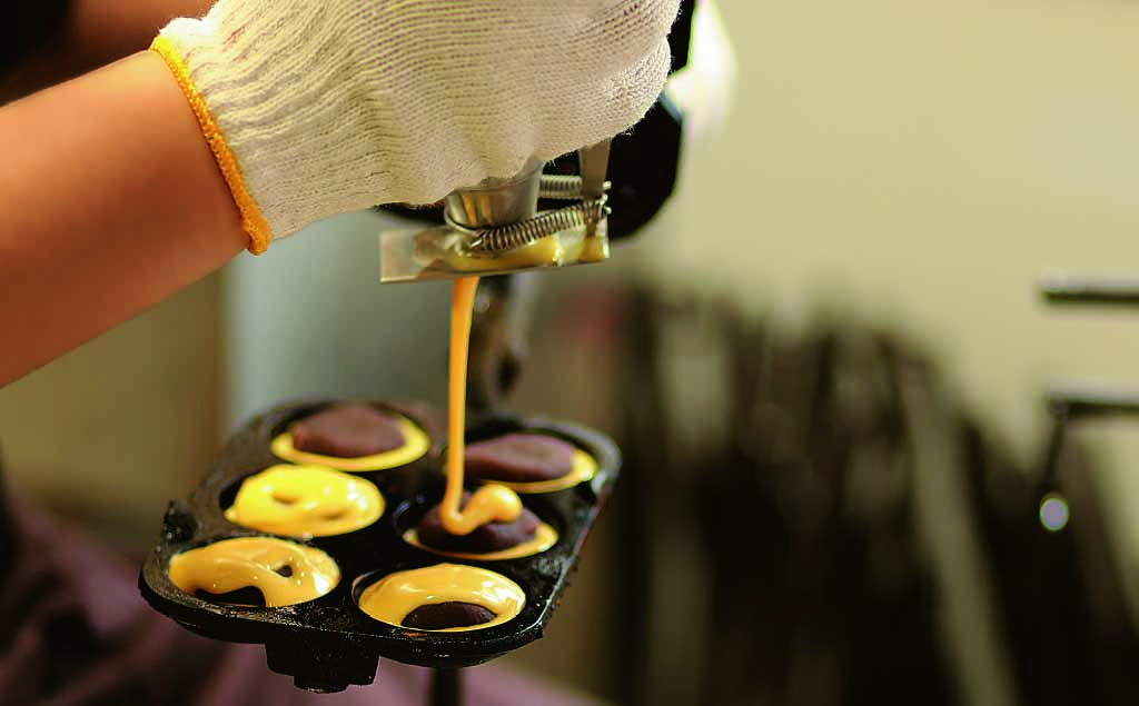 名物のみかげ(金光)饅頭及び煎餅は、創業以来、生地づくりから焼上げまで真心込めて全て手作業で行っています。