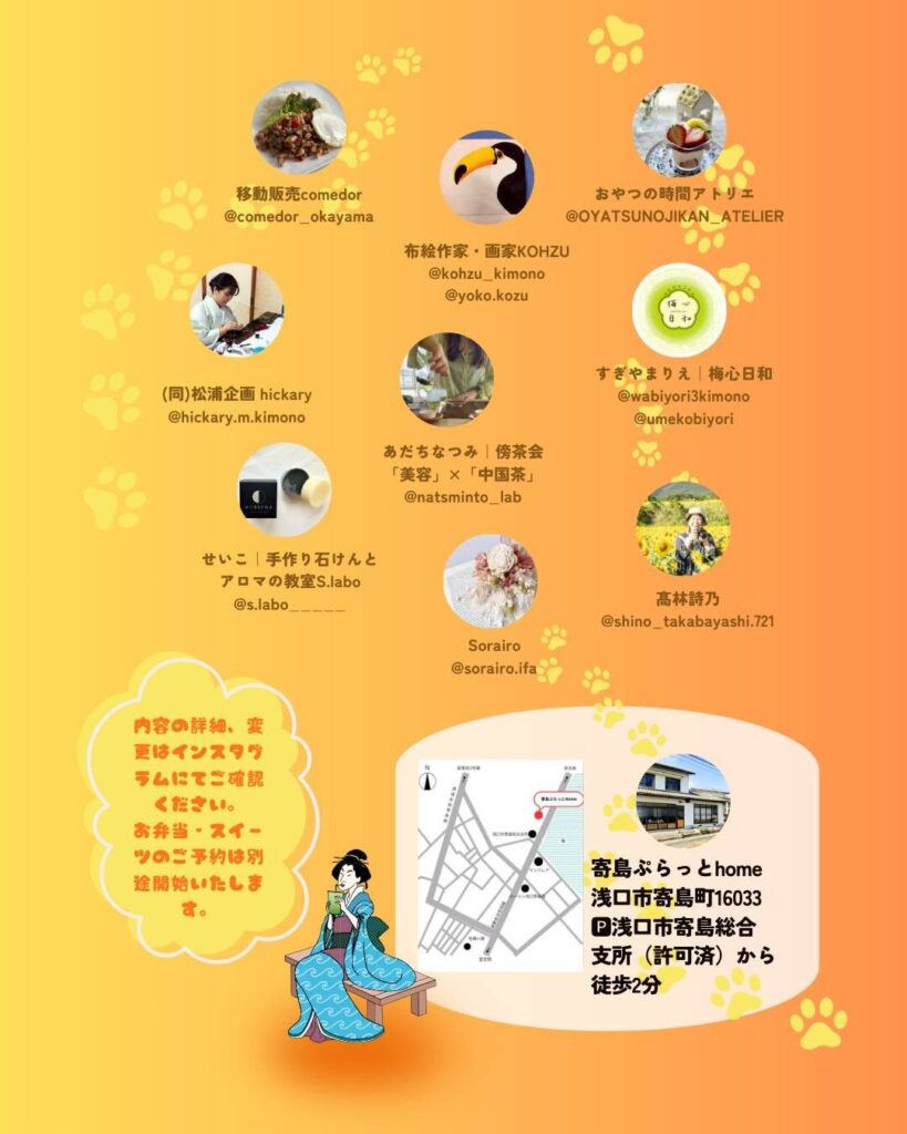 開催場所:寄島ぷらっとhome(浅口市寄島町16033)駐車場・寄島総合支所から徒歩2分