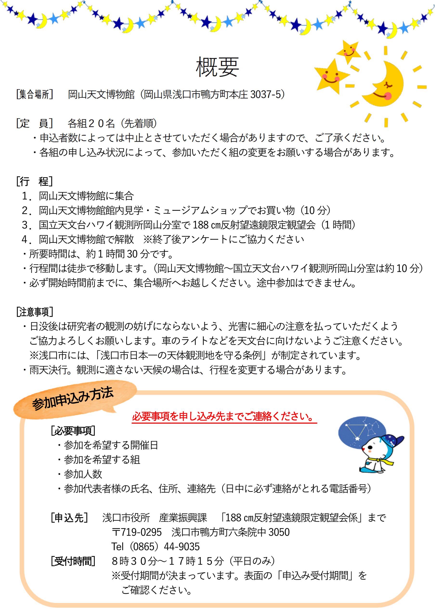 参加料:3,500円 ※望遠鏡の運用に使用させていただきます。