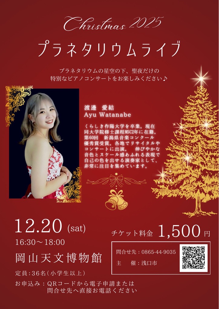 岡山天文博物館にて、クリスマス・プラネタリウムライブが開催されます!🎅🎁