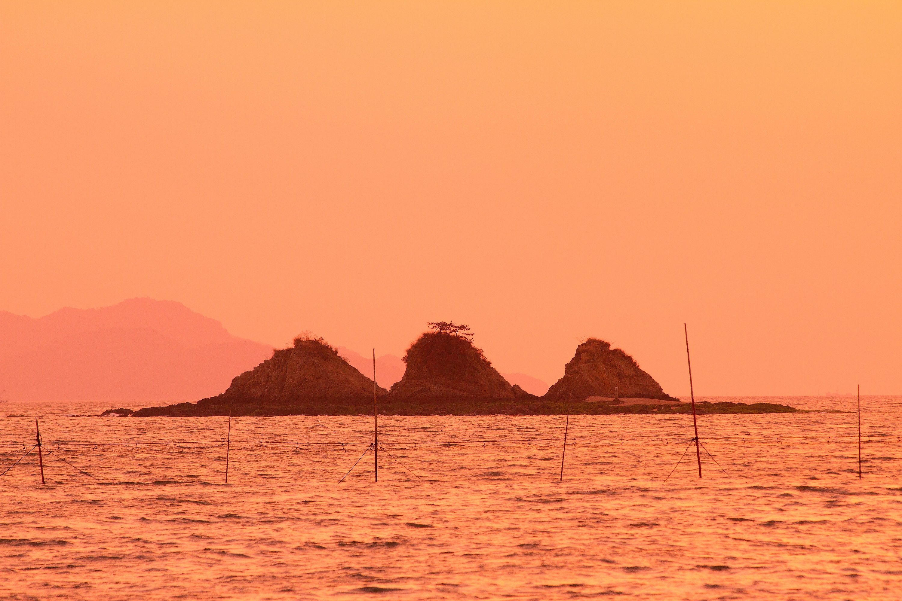 瀬戸内海国立公園内にある展望台や散策道が整備された寄島園地は、自然海岸(三郎海岸)に隣接していて、誰でも手軽に自然と触れ合うことができます。小高い丘の上からは、寄島町のシンボルである三ツ山や瀬戸内海の多島美を一望できます。また、春にはたくさんの桜が咲く花見スポットとしても知られています。